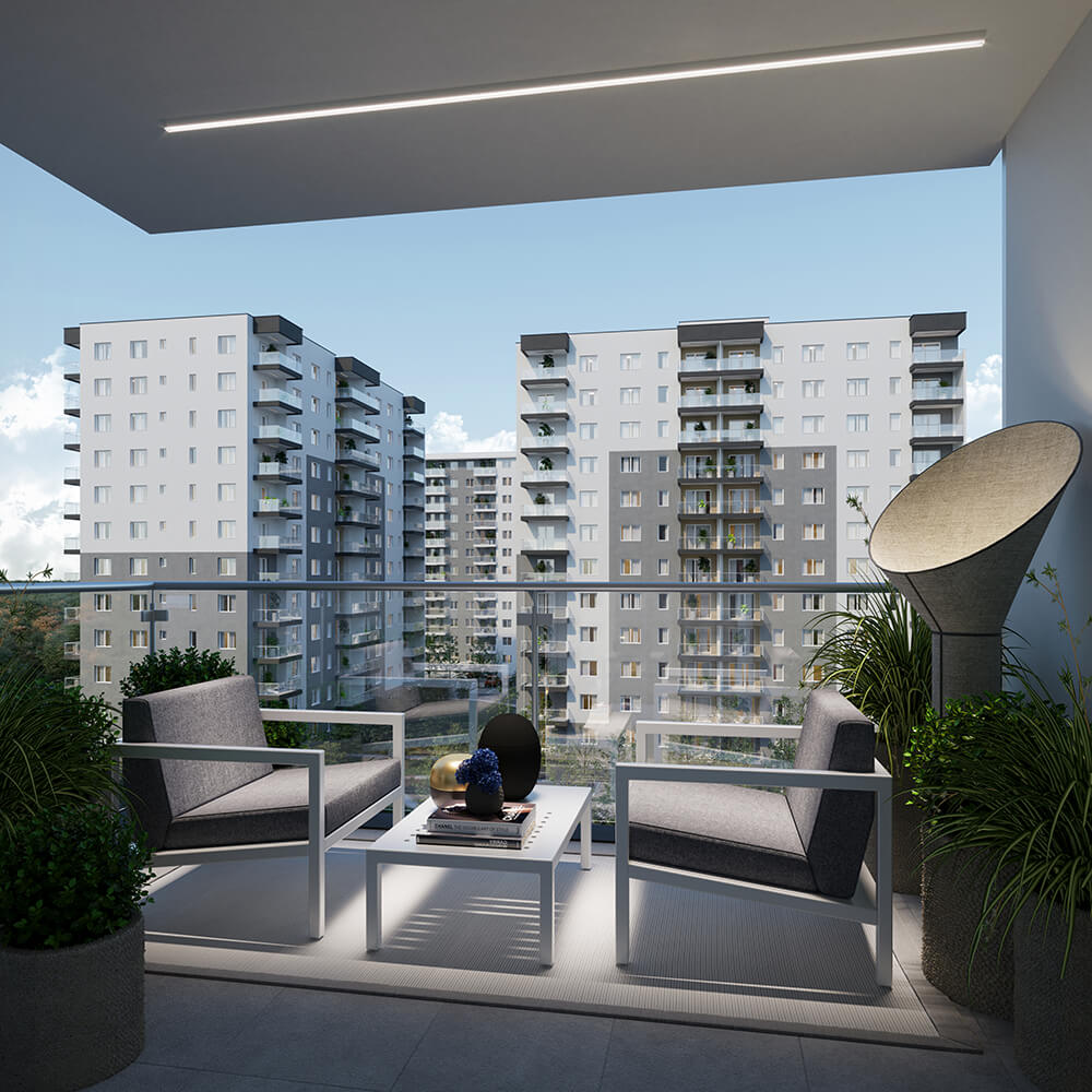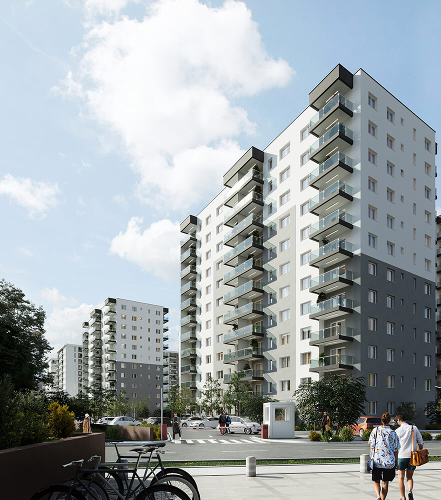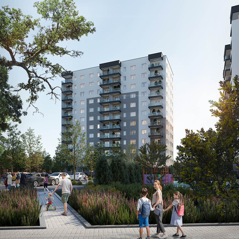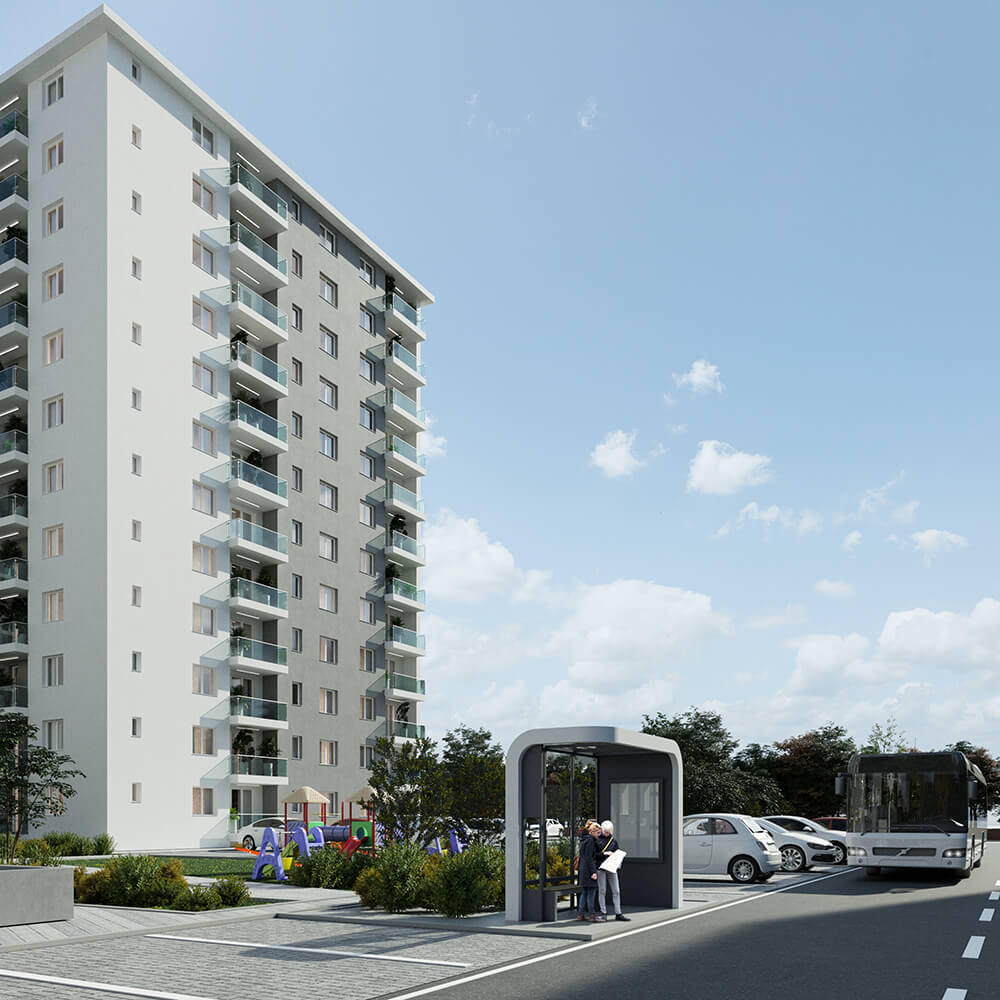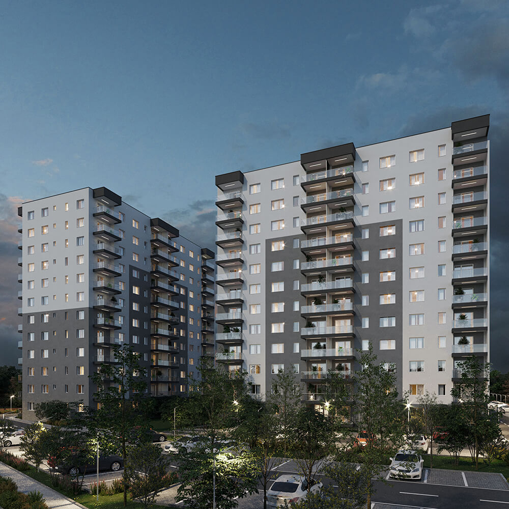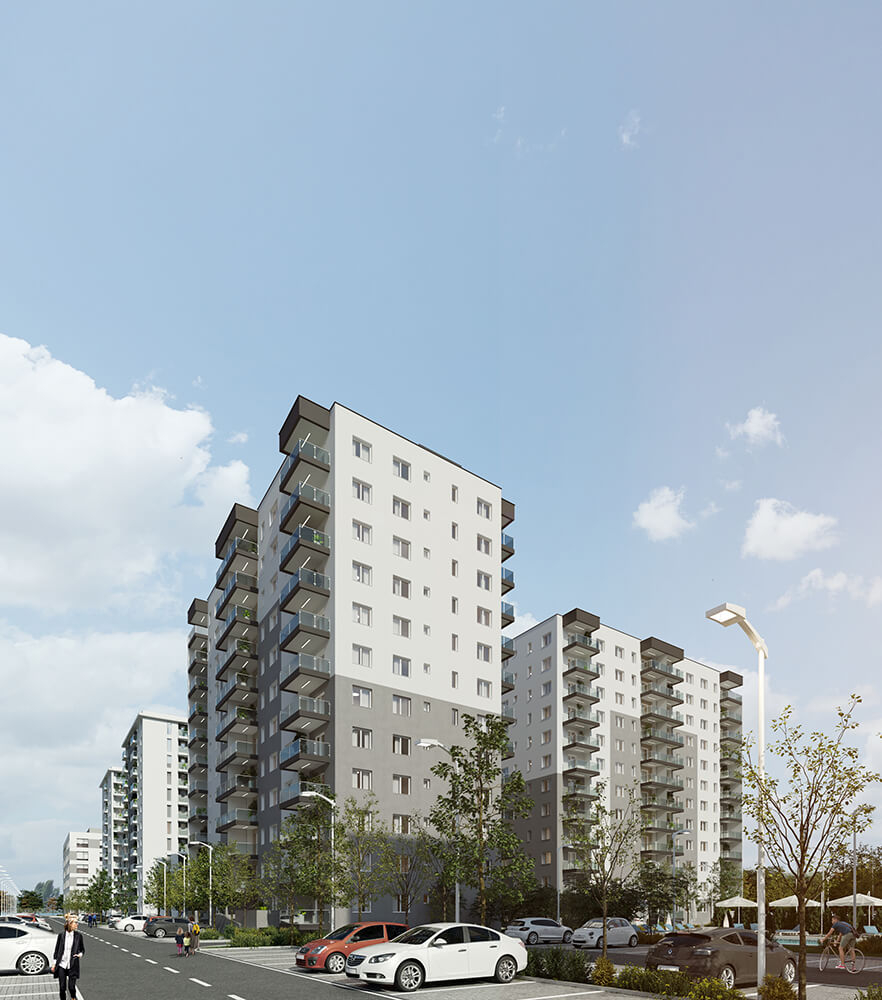 Imaginea de ansamblu a proiectului DIMRI RESIDENCE este o combinație perfectă între designul minimalist și funcționalitatea practică. Fațadele clasice ale clădirilor se contrastează cu piscina și spațiile verzi generoase, oferind un aspect modern și elegant. Putem spune că exteriorul cartierului nostru este o invitație către o viață activă și confortabilă într-un mediu estetic și armonios.